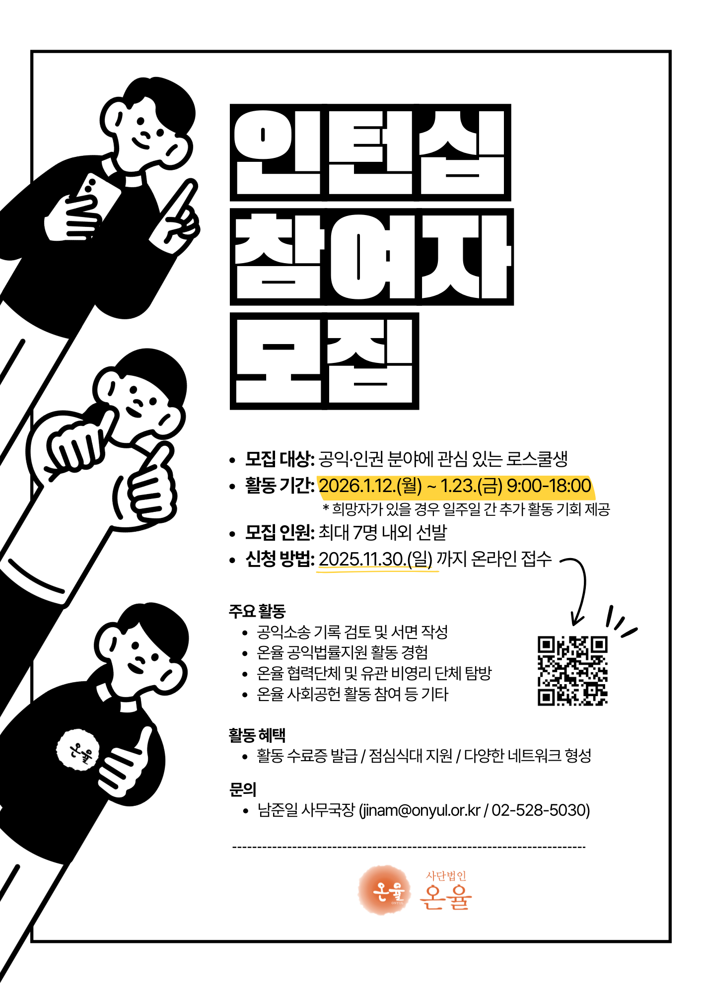 [2025 동계] 사단법인 온율 로스쿨 인턴십 참여자 모집 안내